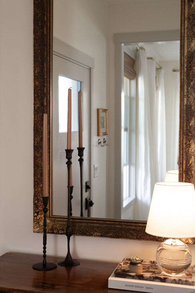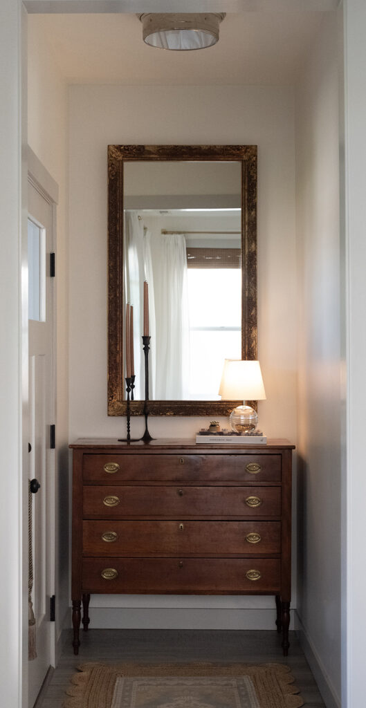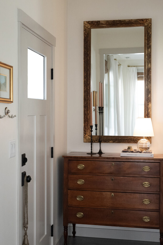Our entryway was the first project I tackled in our new home, and I’m so glad it was! It was a quick project that had a serious impact on the design direction for the rest of our home. Some contrast trim paint, a lighting fixture swap, and some secondhand furniture finds was all it took to welcome us home.